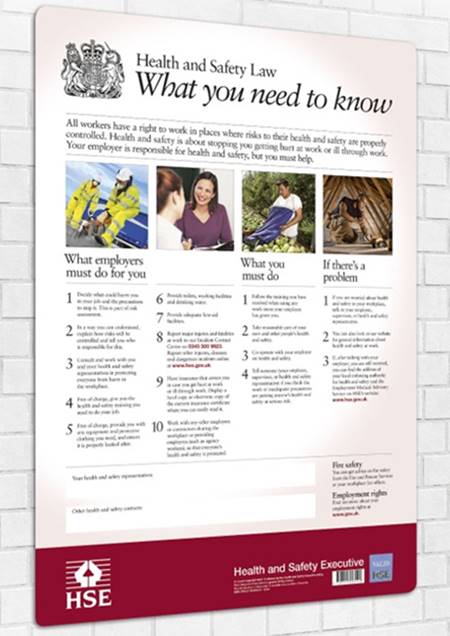 There is no change to the written content in the 2018 reprinted version, and no legal requirement for owners of the current HSE approved Law poster to replace it with a new one. The poster tells workers what they and their employers need to do to ensure their health and safety in the workplace. In simple terms, using numbered lists of basic points, the poster outlines what employers must do, what workers must do and what to do if there are concerns with health and safety in the workplace.