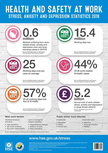 Health and safety at work: stress, anxiety and depression statistics 2018 [ A3 poster ]